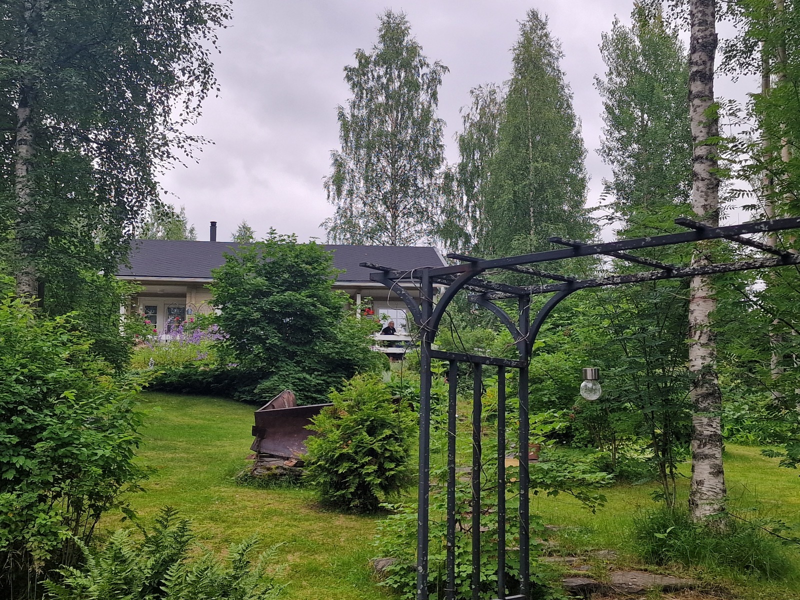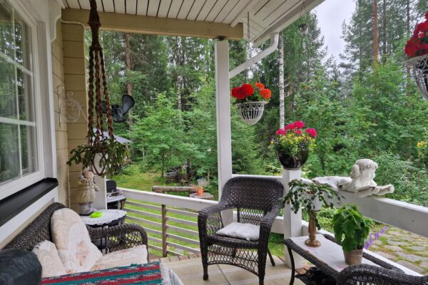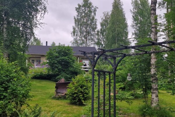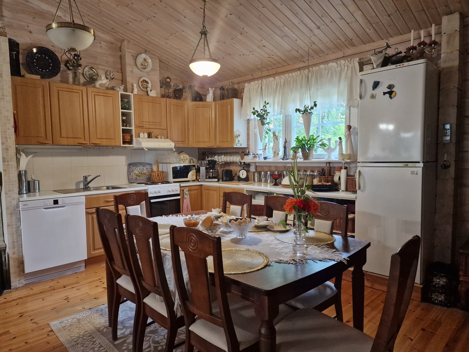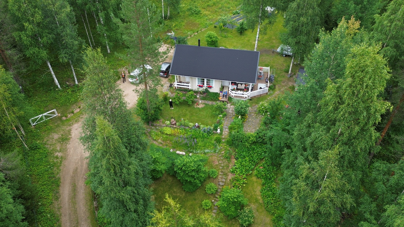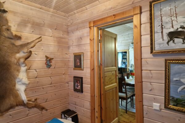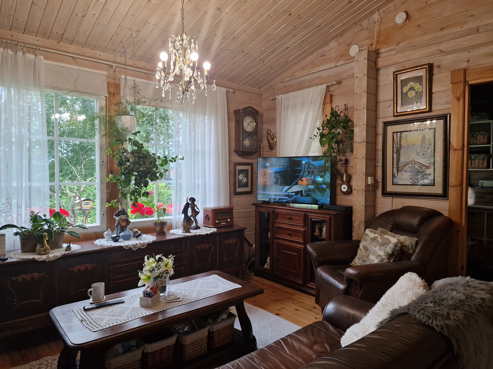 Uudehko hirsitalo on valmistunut v. 2012, sen kokonaispinta-ala on 74 m2, sisältäen olohuoneen, kaksi makuuhuonetta, kodinhoitohuone, pesuhuone/WC, sauna ja kaksi katettua terassia sekä ison n.18 m2 kattamattoman terassin. Päärakennus on muutettu v. 2022 kaavamuutoksella vakituiseksi asunnoksi.