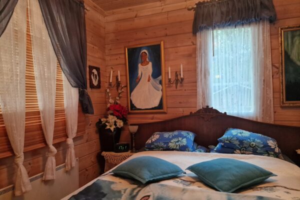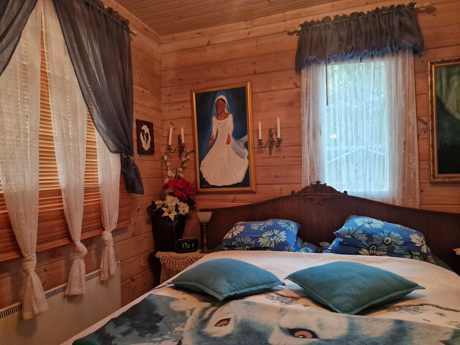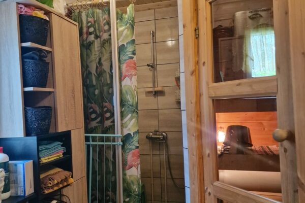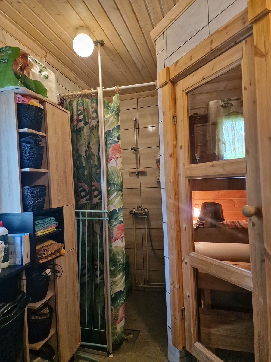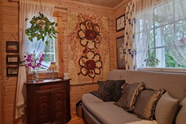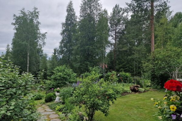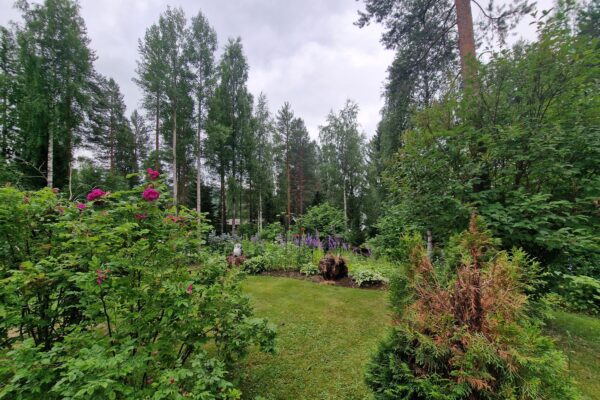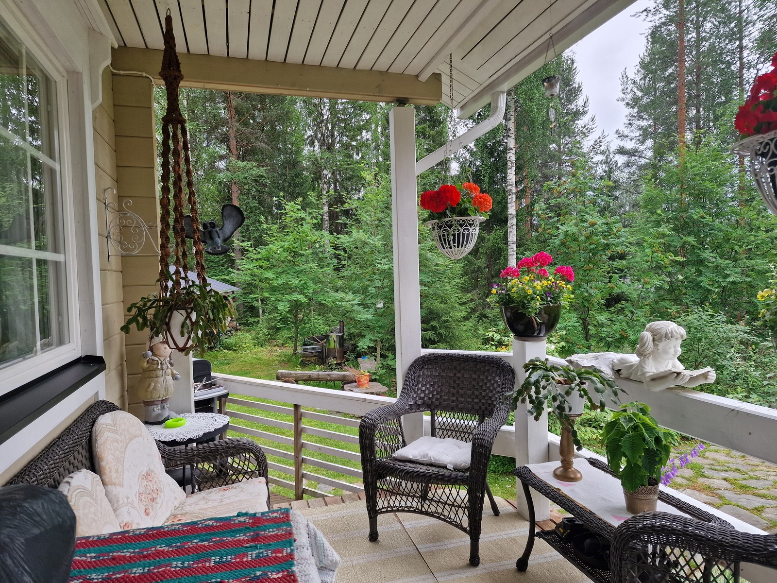Uudehko hirsitalo on valmistunut v. 2012, sen kokonaispinta-ala on 74 m2, sisältäen olohuoneen, kaksi makuuhuonetta, kodinhoitohuone, pesuhuone/WC, sauna ja kaksi katettua terassia sekä ison n.18 m2 kattamattoman terassin. Päärakennus on muutettu v. 2022 kaavamuutoksella vakituiseksi asunnoksi.