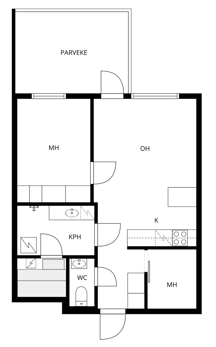 Huoneistoselitelmä3 H + K + S + PH/WC + PARVEKE