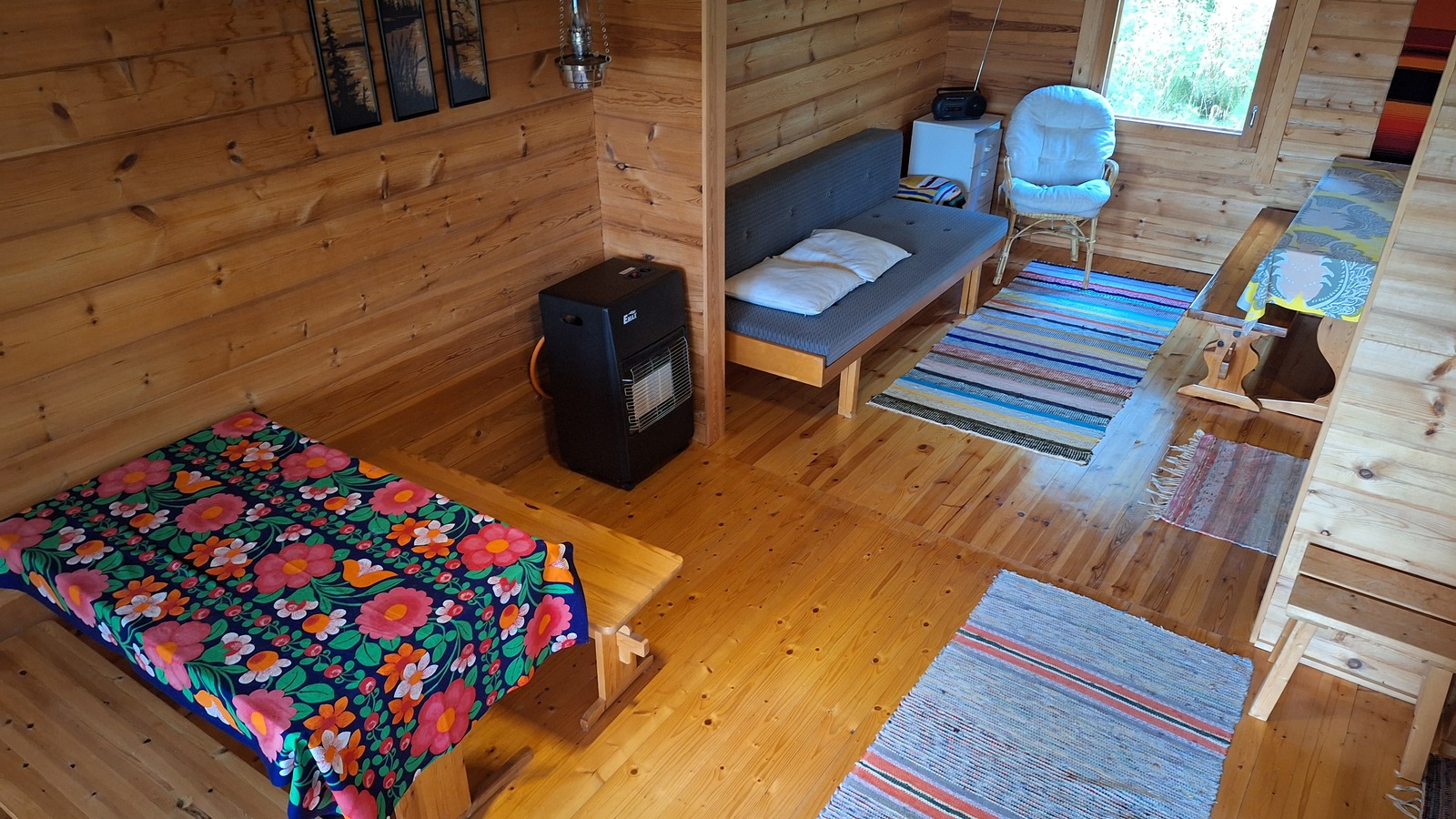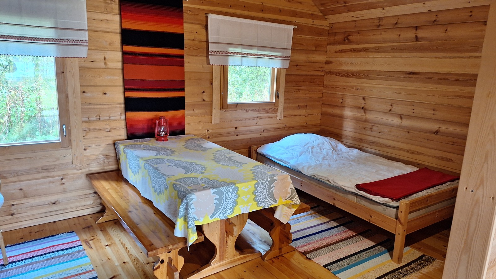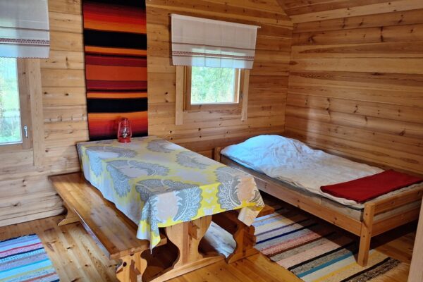Vuonna 1989 rakennettu päärakennus, joka on laajennettu v 2005. Rakennusala 38 m2 + parvi + terassi. Rakennus käsittää keittiön, tuvan, oleskelu- ja makuutilan, parven ja katetun terassin.
